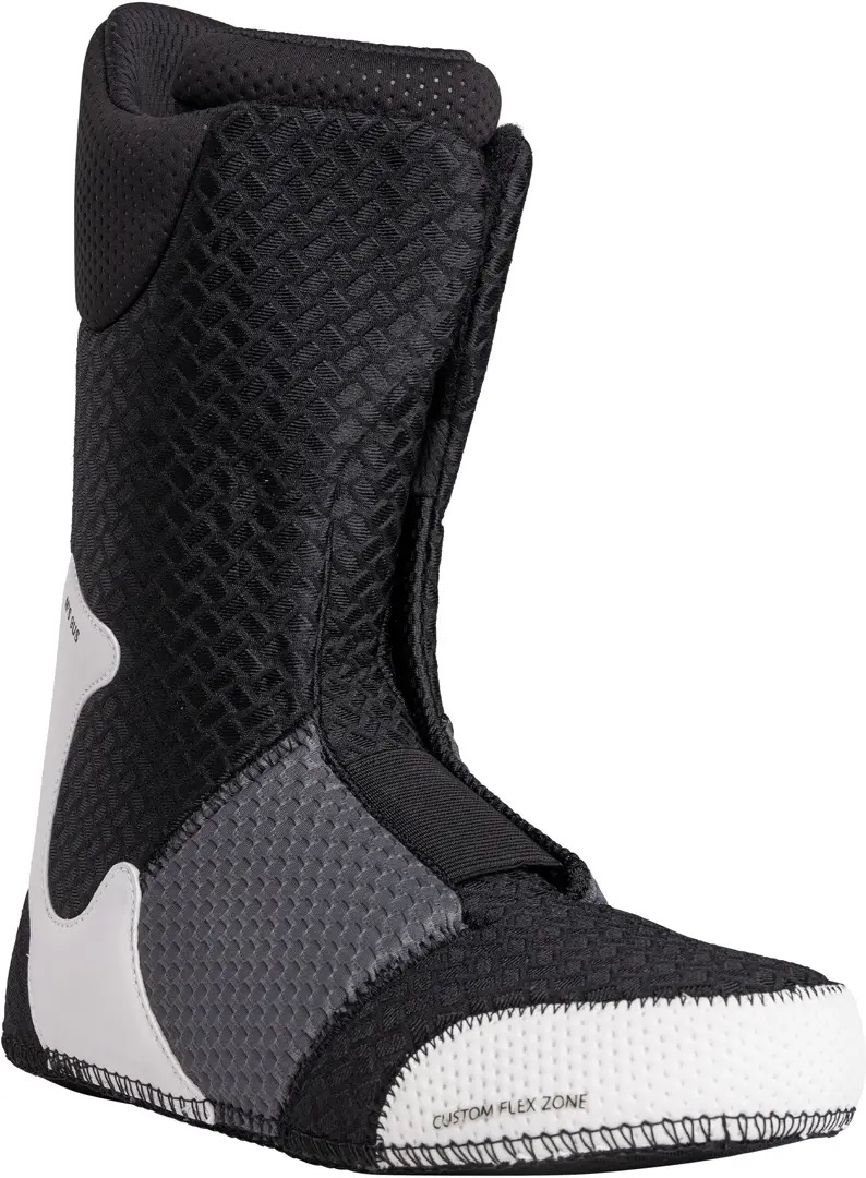 Unsere 3D-Zehenbox eliminiert zusätzliche Schichten und Nähte um den Vorfuß, was die Wasserbeständigkeit und Haltbarkeit verbessert. Das stromlinienförmige Design erleichtert es auch, Ihren Stiefel in die Bindung hinein- und herauszuschieben.